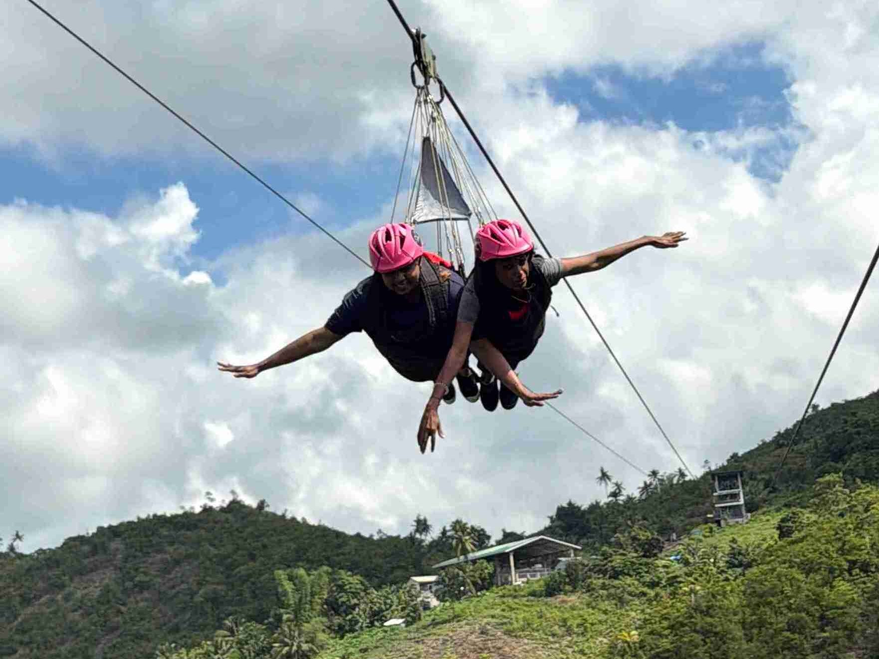 Next, we went to Kawasan Falls, where I had my first-ever experience riding the longest and fastest zipline in the Philippines. Flying above the lush forest below was exhilarating and unforgettable. We spent about four hours there, enjoying various activities — cliff jumping, sliding, and more — laughing and feeling thrilled the entire time. It was comforting to know that even if you could not swim, the guides were always there to watch over you and ensure your safety.