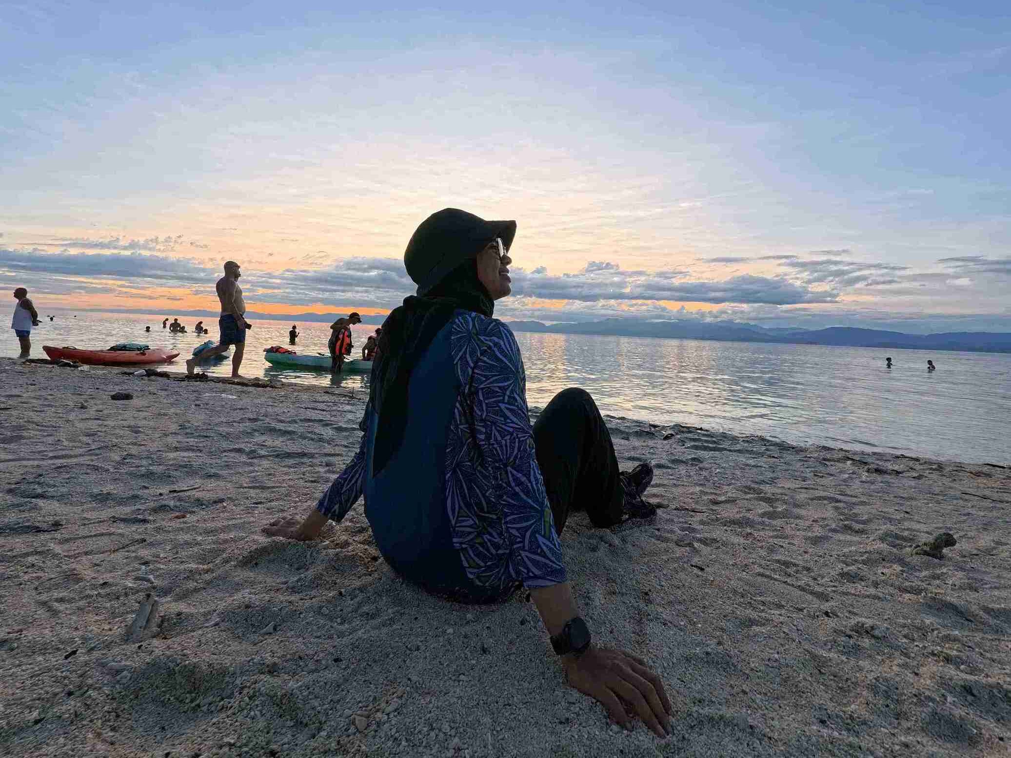 After watching the sunset, we moved on to our next stop in preparation for the following activity — snorkelling to see the whale sharks. After returning to the hotel, we freshened up, had dinner, performed jamak prayers, and rested.